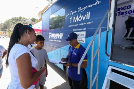 La Guaira, 28/03/26.- La ruta del T-mueve, la oficina itinerante del Banco del Tesoro, llega al estado La Guaira, específicamente en el Boulevard de Naiguatá, para brindar a los habitantes del sector y a visitantes, la facilidad de abrir cuentas solo con su cédula laminada.
