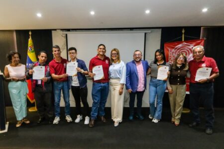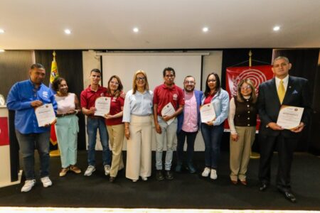 En el acto que contó con la presencia de la periodista Helena Salcedo, fundadora de LRDS, y Alejandro Silva, presidente de Yvke Mundial, se reconoció con un botón por 15 años de servicio a Samuel Romero y por 5 años de labor a Alexander Vargas.