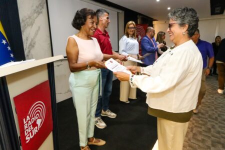 En un sencillo y emotivo acto protocolar, celebrado en el auditorio Hugo Chávez del Banco del Tesoro y en el que se reconoció la labor de sus trabajadores así como de los productores nacionales independientes que acompañan a la audiencia diariamente, La Radio del Sur expresó su respaldo a la presidenta encargada Delcy Rodríguez, que junto al pueblo «garantiza la unidad» nacional para la estabilidad del país.