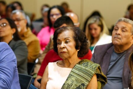 Asimismo, se distinguió con un botón a los colaboradores, el doctor en Seguridad de la Nación y profesor Henry Navas, la historiadora María de Jesús Daza, a la asidua oyente Zoraida Moya y a la presidenta de TeleSur, Patricia Villegas.